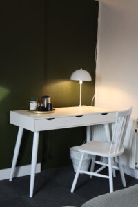 Ydes Hjemmeservice byder velkommen til det grønne værelse 7. Ydes Hjemmeservice holder til få hundrede meter fra Roslev Hus og er et rengøringsselskab, som dækker Skive, Salling og Mors som de primære områder. Hos Ydes Hjemmeservice er ingen opgave for lille eller stor. Værelse 7 er indrettet i nogle skønne grønne nuancer, bløde materialer og hjemlig hygge.